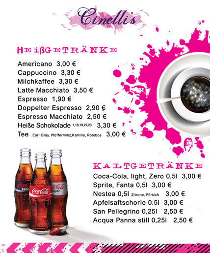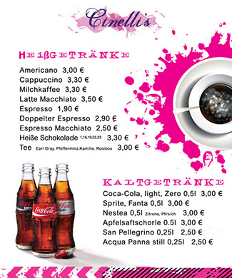 Das stylisch-schrille und leicht provokative Corporate Design unterstreicht die Besonderheit der Eiskreationen. Somit hebt sich das CINELLI's einmal mehr von herkömmlichen Eisdielen und Cafés ab.